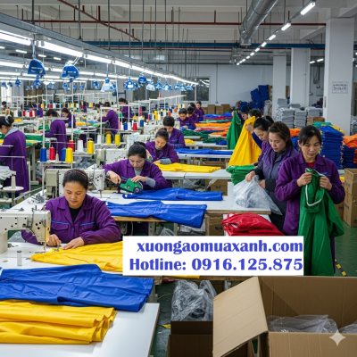 Xưởng sản xuất áo mưa xanh chuyên sản xuất, in ấn áo mưa quà tặng, áo mưa quảng cáo.